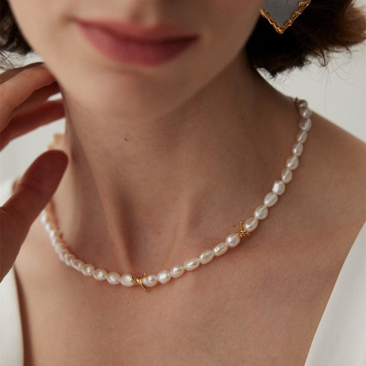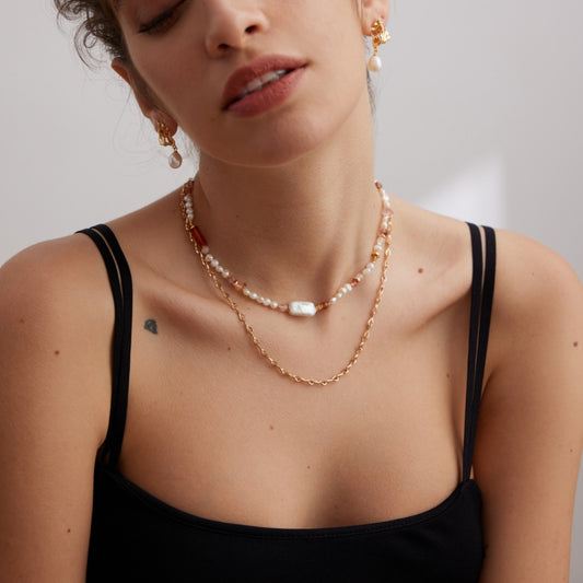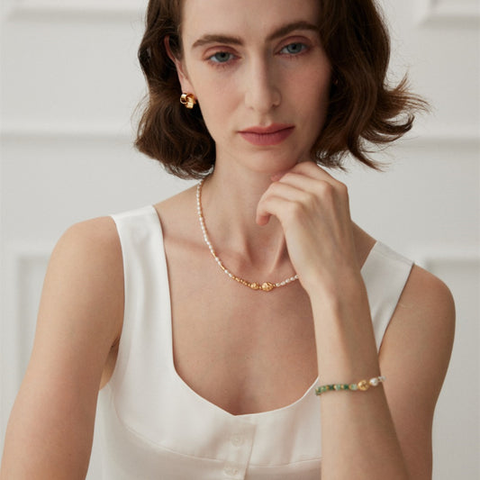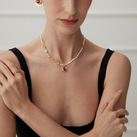 Pearls are the central theme of our jewelry designs. Our pearl necklaces primarily feature natural freshwater pearls, combined with 925 sterling silver or natural gemstones, creating styles that are vintage, fashionable, vacation-ready, and subtly luxurious. In this pearl necklace collection, you'll find a variety of trendy elements such as crosses, hearts, evil eyes, letters, clovers, and flowers. You're sure to find a design you love. These necklaces pair beautifully with dresses, shirts, and T-shirts, whether you're aiming for a vacation look, a casual style, or a professional office appearance. They empower you to confidently express yourself in any setting and social occasion.