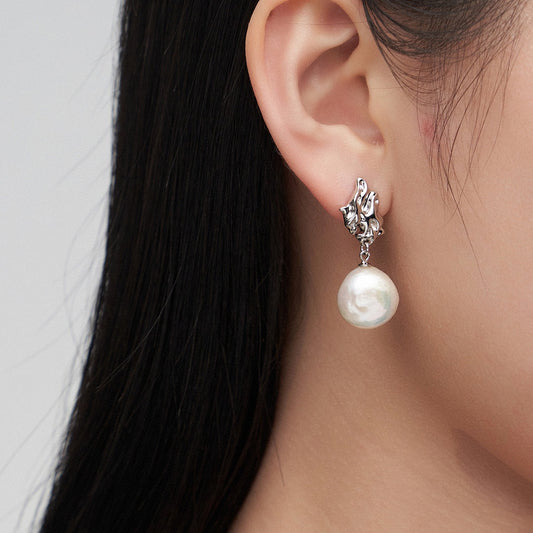 925 Sterling Silver Beads with Pearl Drop Earrings